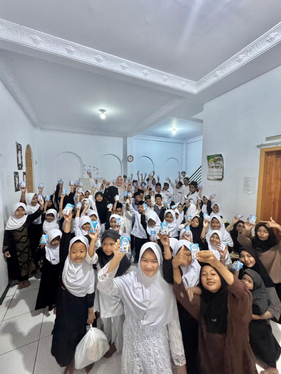 Para santri dan santriwati menyambut dengan gembira dan antusias. Mereka berpose sambil memegang kotak susu yang diberikan sebagai ungkapan terima kasih. Kegiatan ini menjadi bukti nyata komitmen Lin Yulyanti dalam berinteraksi langsung dengan masyarakat dan memberikan kontribusi positif, khususnya bagi kesejahteraan generasi muda.
