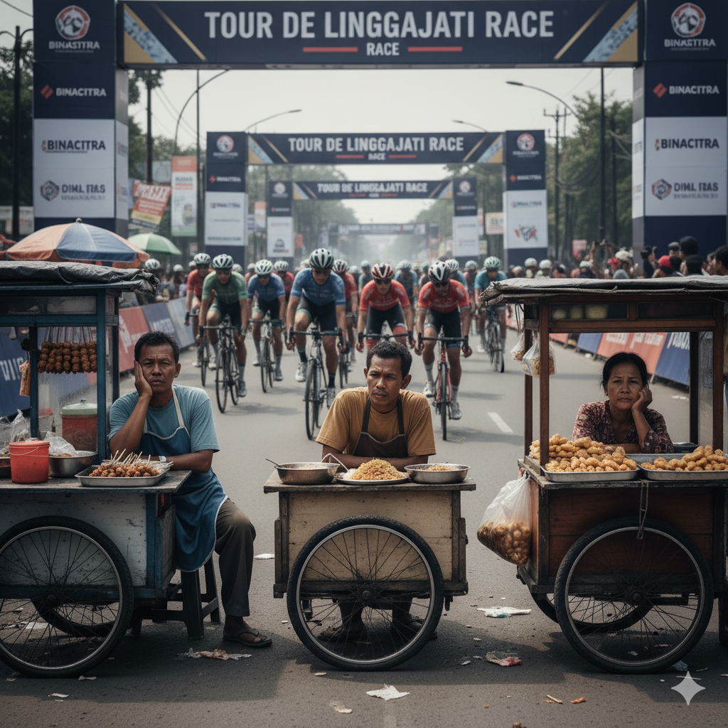 CiremaiNews.com, Kuningan – Perhelatan Tour de Linggajati tahun ini menuai keluhan dari para pelaku usaha mikro, kecil, dan menengah (UMKM) di Kabupaten Kuningan. Mereka merasa event olahraga internasional ini tidak memberikan dampak ekonomi yang berarti, bahkan justru merugikan karena peniadaan Car Free Day (CFD).