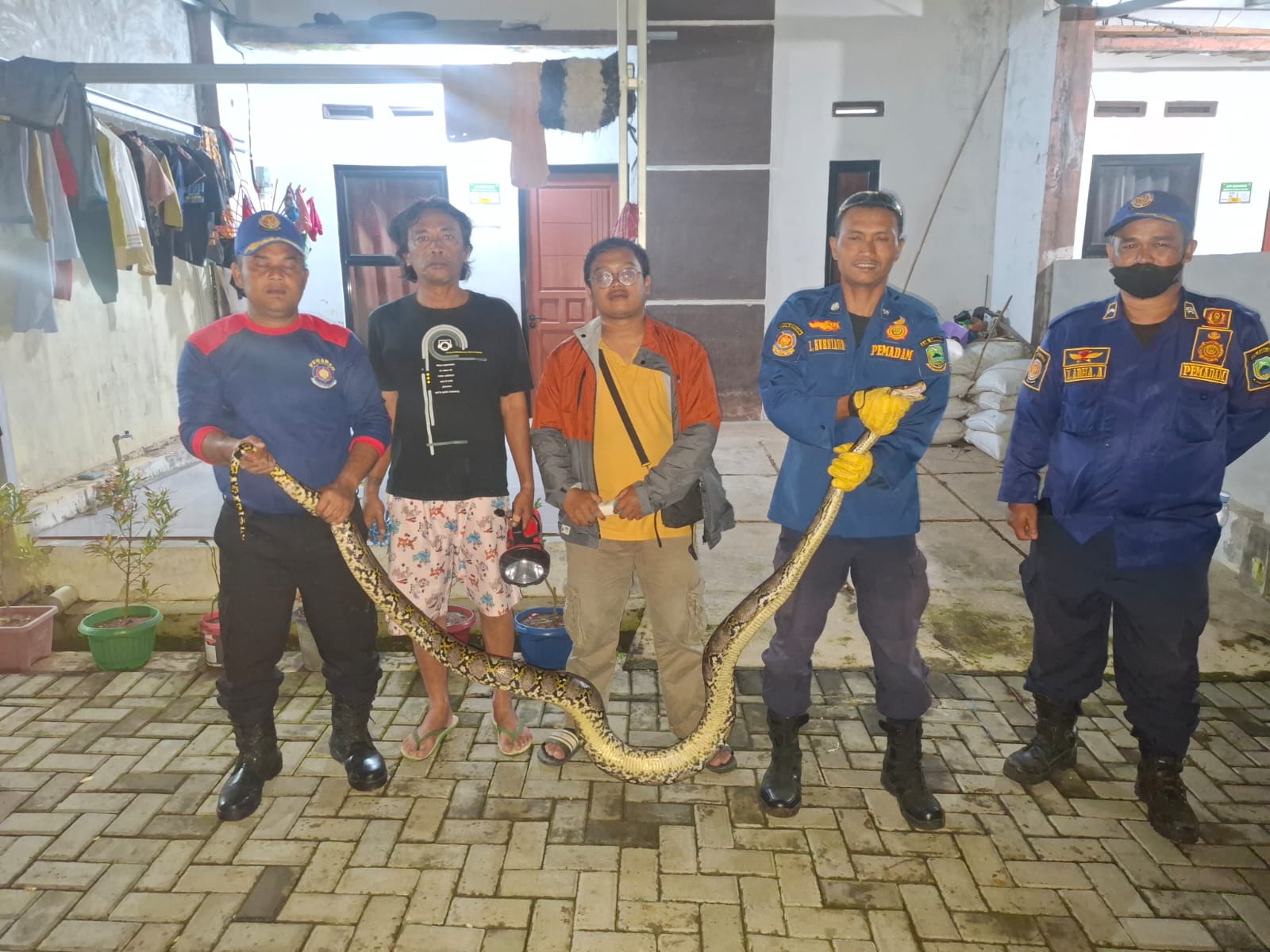 Karena khawatir membahayakan keselamatan dan ternak warga, Yogi Indra kemudian melaporkan keberadaan ular tersebut ke Call Center UPT Pemadam Kebakaran Satpol PP Kabupaten Kuningan untuk meminta bantuan evakuasi.