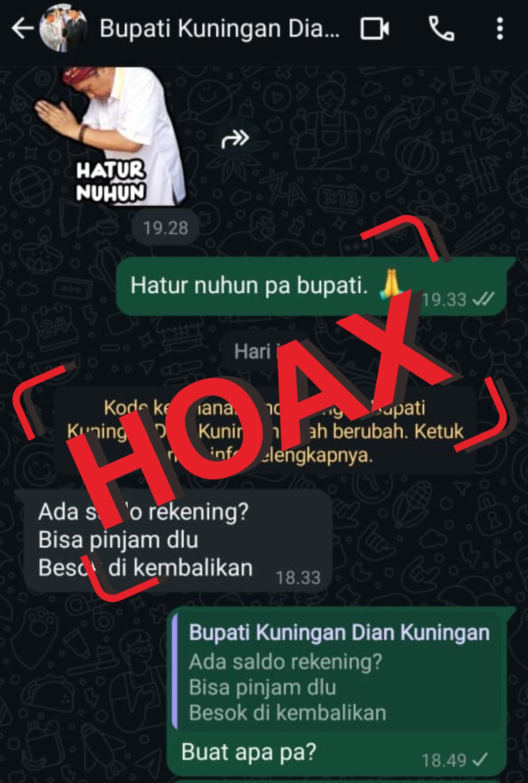 Ia mengingatkan masyarakat agar selalu melakukan konfirmasi terlebih dahulu ke saluran resmi jika menerima pesan yang mencurigakan, terutama jika mengatasnamakan pejabat publik.